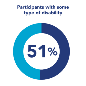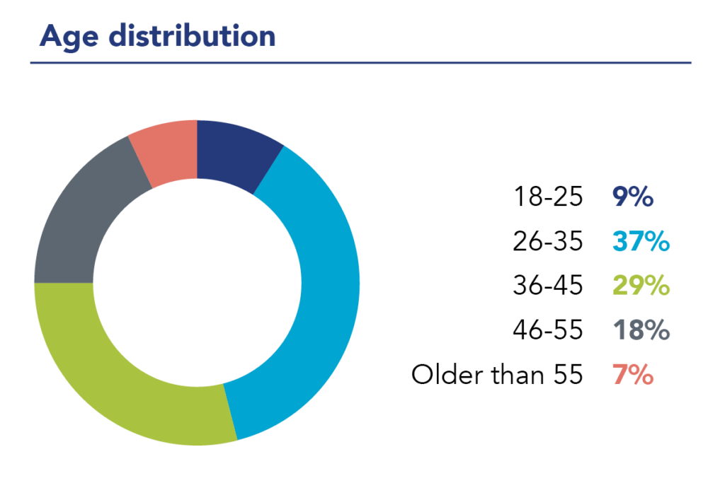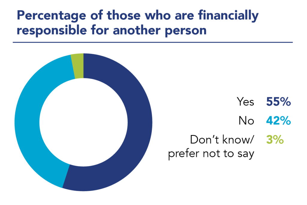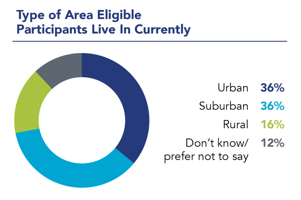 We have a pretty even distribution of age, those who are financially responsible for another person and the types of areas participants currently live in.