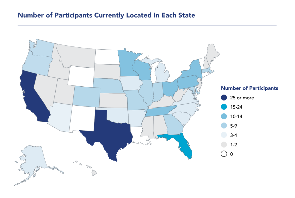 The NSS is being conducted in English, Mandarin, and Spanish to increase access to underrepresented communities. As of October 28, 2021, we have had 291 eligible participants that have expressed willingness to participate in the qualitative study. Survivors come from a wide variety of states with around 80% of the 50 states represented and the majority coming from Texas, California, and Florida.