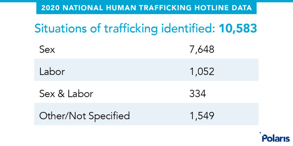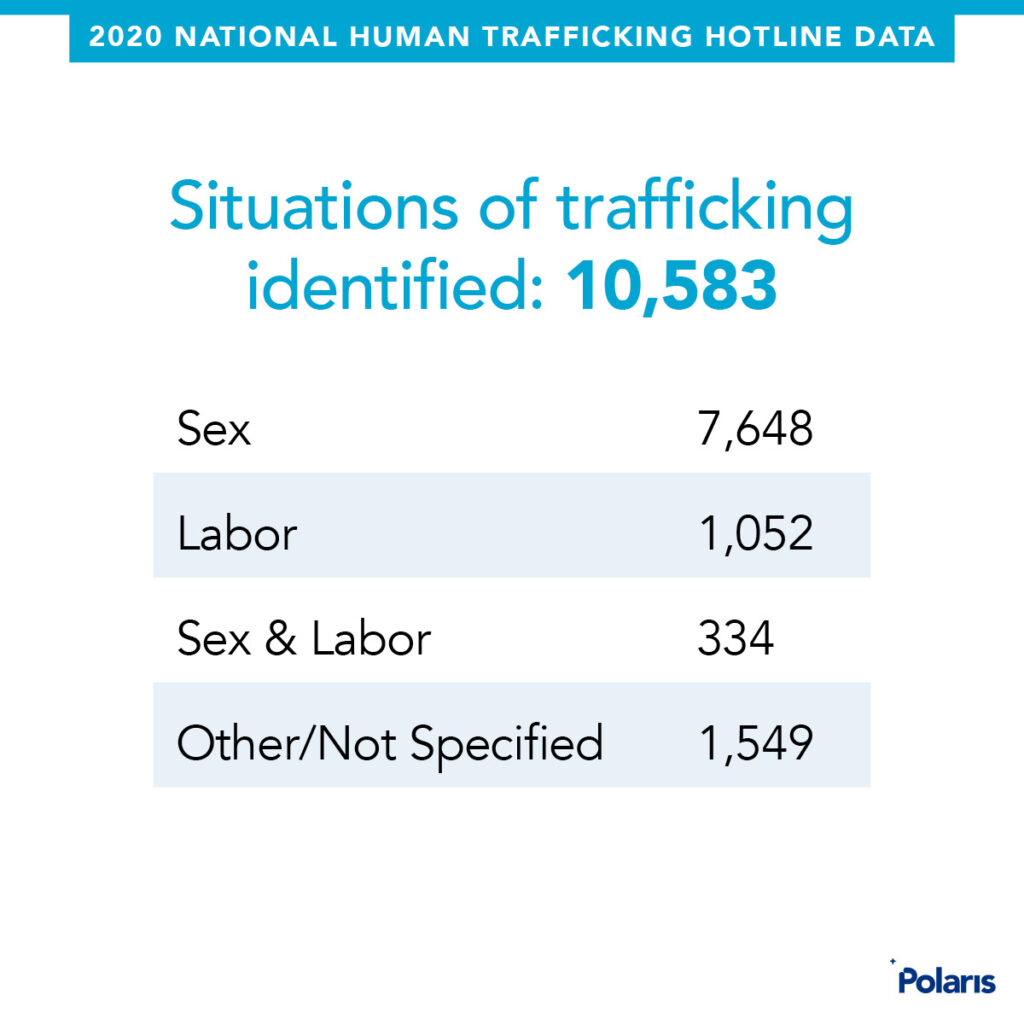 The U.S. National Human Trafficking Hotline learned about 10,583 situations of human trafficking in 2020.
