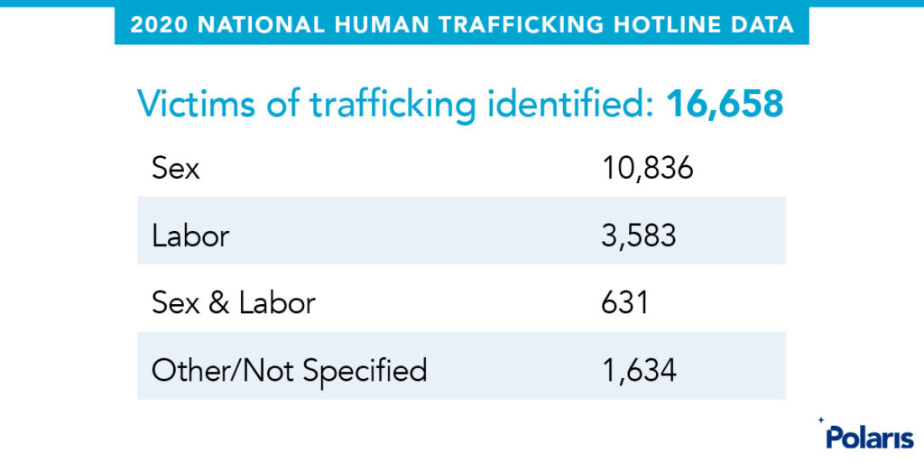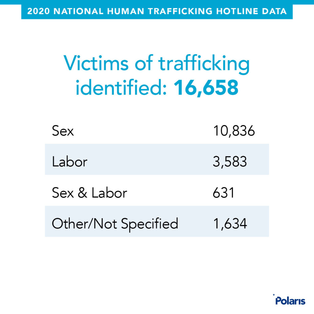 The U.S. National Human Trafficking Hotline identified 16,658 victims of trafficking in 2020.