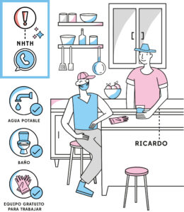 Ricardo vive en una casa limpia y segura en la propiedad de su empleador con otros cuatro compañeros de trabajo. Todos tienen un espacio adecuado, una cama, un baño que comparten, cocina y agua potable. En una de las paredes de la casa, Ricardo puede ver y comprender fácilmente cómo presentar una queja si es necesario. Los fines de semana, Ricardo y sus compañeros de trabajo toman prestado un vehículo provisto por el empleador para viajar a la ciudad y comprar alimentos y suministros. La visa y el contrato de trabajo de Ricardo finalizarán en noviembre. A partir de entonces, su empleador pagará los costos de transporte para que regrese a su hogar en Veracruz, México.