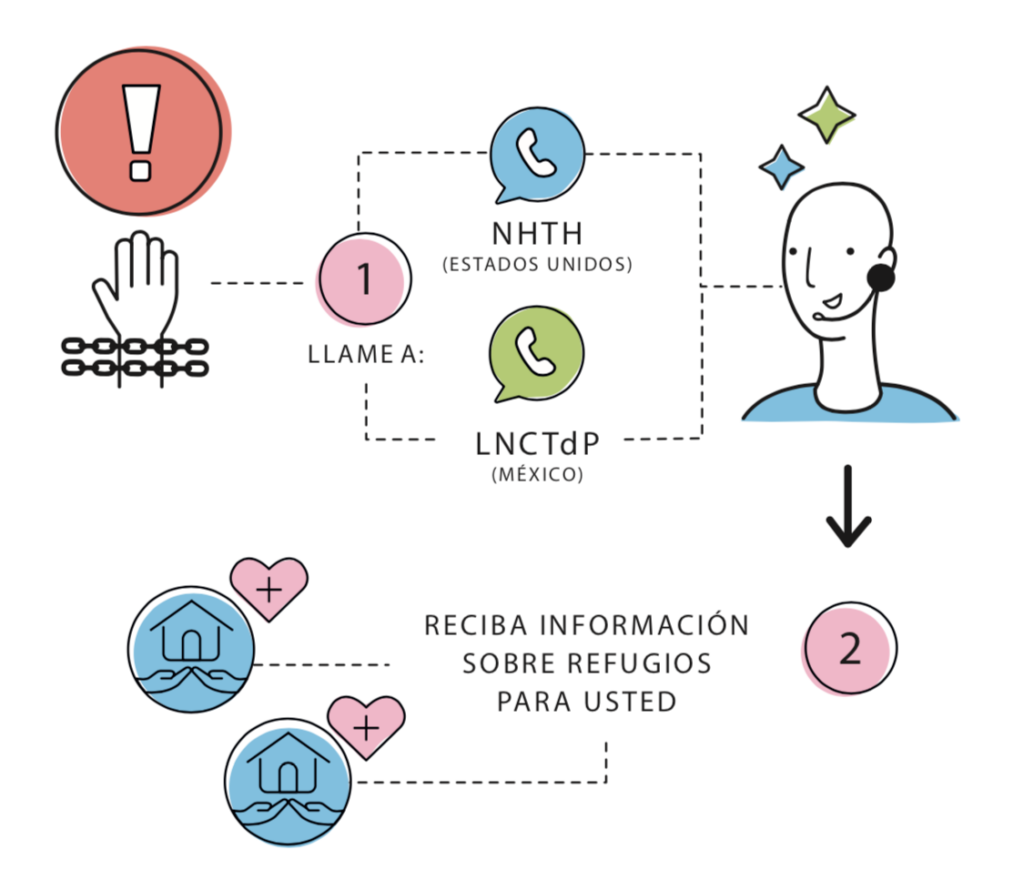 Polaris y la NHTH coordinan casos binacionales con la Línea Nacional Contra la Trata de Personas en México operada por Consejo Ciudadano para la Seguidad y Justicia de la Ciudad de México. Si vives en México o tienes que cruzarlo para regresar a tu país de origen, te puedes comunicar con la Línea contra la Trata para pedir asistencia llamando al 800-5533-000.