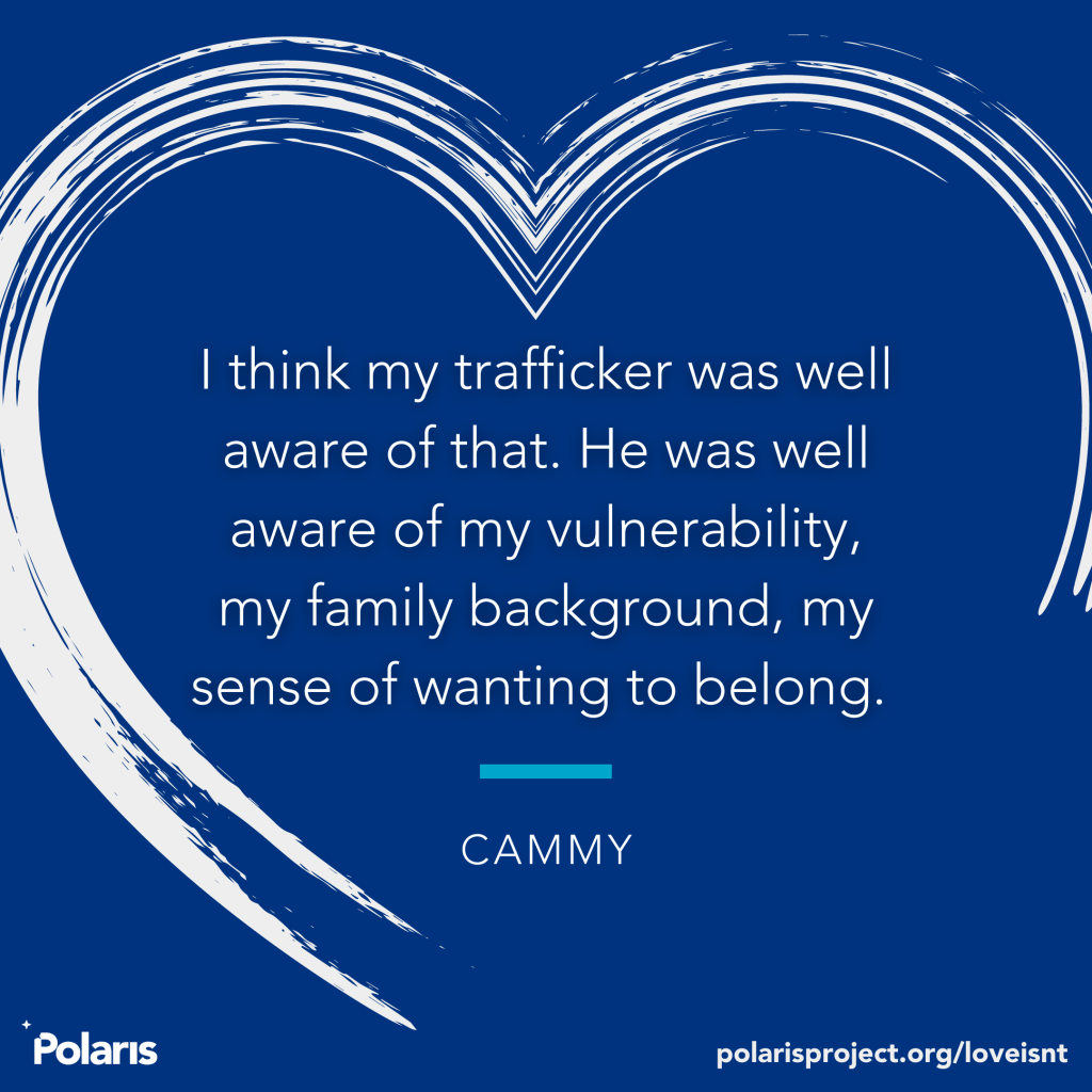 Contrary to popular misconceptions, sex trafficking rarely begins with kidnapping by a stranger. Instead, sex traffickers groom their victims by using love – romantic love, friendship and familial love – to manipulate them into cooperating in their own exploitation. Learn more about the grooming process and what love doesn’t look like.